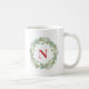 Élégante tasse à café de Noël avec le monogramme du récipiendaire en rouge entouré d'une couronne verdoyante. Cette mignonne tasse de vacances fera certainement un grand cadeau pour un être cher spécial.