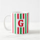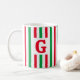 Cette mignonne tasse présente des rayures verticales rouges et vertes. Peut être customisé avec une initiale pour en faire un cadeau de vacances spécial.