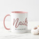 Simple Elegant Rose Gold Foil Nails Mug présente le script "nails" de faux feuillets et un nom dans les lettres de majuscules en bloc. Parfait comme cadeau pour l'artiste/technicien Nail.