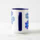 Des flocons de neige 3d dans les bleus foncés et clairs, blancs et gris, ornent cette tasse.