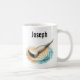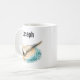 A personalised coffee mug featuring a name or custom text above a watercolor ultrasound probe with concentric sound waves in teal and orange. Made for sonographers, ultrasound technologists, sonography students, and anyone who works in the ultrasound department. A unique professional design that shows pride in the work and makes a very meaningful gift.