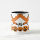 Une tasse d'Halloween éffrayante et mignonne avec un monogramme personnalisé parfait pour les enfants. L'illustration montre une mignonne sorcière errant dans la nuit d'Halloween sombre avec corbeau et Jack o lanternes suivant. Le monogramme peut être personnalisé. Si vous aimez mes oeuvres d'art, trouvez d'autres produits de ce genre dans mon magasin "halloweengallery". Visitez le lien de ma boutique : https://www.zazzle.com/store/halloweengallery