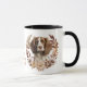 Une jolie couronne d'automne dans les tons marron, brun brun brun, brun et crème entoure l'image d'un bel espagne Springer anglais. L'image de chien est imprimée deux fois sur la tasse, avec votre texte personnalisé entre eux.