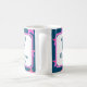Cette tasse monogramme est une excellente façon de commencer votre matin. Un motif étoilé rose vif apparaît contre un arrière - plan bleu vif des deux côtés de cette tasse. Votre monogramme est présenté dans un carré avec le nom de famille et l'année. La lettre, le nom et l'année peuvent rapidement et facilement être personnalisés. Design original - C. McGouldrick