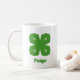Add some extra Irish luck to your mornings with this easily personalizable Stylized Lucky 4-Leaf Clover Mug. An angular two-toned green four-leaf clover shape sits above green text of your choice. Just type in your name or other preferred text, place your order, and enjoy your favorite beverage while preparing for whatever the day brings you with the help of your good-luck clover mug.