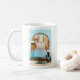 Start your mornings with the feeling of waking up in a beautiful European villa. This wraparound ceramic mug features a magnificent retro illustration of a classic coastal town, viewed through an elegant archway with a vintage scooter parked in front.