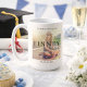 Chic, moderne, tasse photo de graduation. Le prénom et le nom de l’élève sont magnifiquement affichés sur la photo, combinant une police serif classique avec un script manuscrit moderne et féminin, créant un look sophistiqué et intemporel. Cela fait le cadeau parfait pour votre diplôme d'études secondaires ou collégiales.