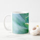 Un doux succulent vert avec des courbes gracieuses orne cette tasse.