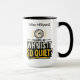 The name on this mug can be customized or removed. You have an option of the handle and interior colors and the style of mug.