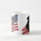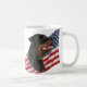 Une étude fière de tête de rottweiler devant un drapeau américain de ondulation.