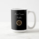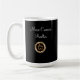 Les tasses de café chiques de thème d'agent immobilier dans une conception élégante d'or, de noir, et blanche décorés d'un emblème classieux d'immobiliers qui a un or ont coloré le symbole de maison et le texte de nom que vous pouvez remplacer par n'importe quel nom ou nom de la société dans le style et faites un grand cadeau exécutif.
