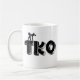 TKO écrit dans la police asiatique de style, écriture de l'anglais noir. Sur le dessus du technique frappez les initiales sont les silhouettes de deux combattants de MIXED MARTIAL ART sont économiquement, un gants bleus de port et un rouge, qui sont les couleurs traditionnelles de MIXED MARTIAL ART.