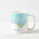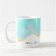 Une tasse au design estival serein. Image turquoise / aquarelle vert aqua avec une bordure ondulée en faux or. Élégant et adorable.
