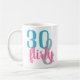 Bonjour Trente ! Célébrez votre fabuleux 30e anniversaire avec style! Cette tasse trentaine et flirtée a du texte rose et bleu.