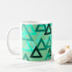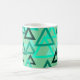 Ce design de tasse a des triangles épars de plusieurs tailles dans les tons vert de mer.