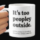 Des mugs humoristiques disent : "C'est trop de gens dehors...alors je reste et je m'occupe de ma dépendance à la caféine." Personnalisez avec un nom imprimé verticalement sur le côté. Faites un cadeau amusant ou parfait pour vous-même.