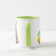 Mug in a collage of colorful tropical fruits including pineapple, papaya, mango, gogi berries, kiwi, and lime, with a tropical theme of rich textures and lush foliage.