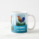 Amusante tasse au design turquoise et bleu clair avec des peintures originales d'un coq. Vous pouvez remplacer le coq par vos photos personnalisées si vous le souhaitez. Grand comme un cadeau pour son anniversaire ou juste parce que.
