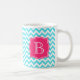 Un cadre fait sur commande de monogramme de roses indien est sur un arrière - plan des zigzags de blanc et de turquoise.