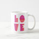 Une tasse moderne, fantaisiste et mignonne de la Saint-Valentin avec une grande typographie d'AMOUR rose vif faite de blocs. C'est un grand cadeau de la Saint Valentin pour une petite amie de femme qui aime la typographie ou le design graphique.