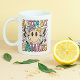 Un Petit Peu Dramatique Dramatique Super Dire Typographie Thé Café Mug présente le texte "Un Petit Peu Dramatique" dans la typographie moderne sur un arrière - plan en damier rose avec fleurs super, boulons éclairants et un visage souriant. Conçu par Evco Studio www.zazzle.com/store/evcostudio