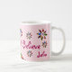 Personnalisez ceci Je crois que Metal Unicorn Fleurs Pink Mug. Profitez de cette magique Unicorne colorée debout parmi les belles fleurs. Il a un aspect numérique métallique.
