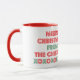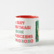 Cette tasse unique est un grand cadeau à donner des poulets à leur propriétaire (ou, car les poulets pensent à lui, leur personnel !). Un poulet drôle se tient prêt un arbre de Noël complètement de l'esprit de la saison, embrouillé les lumières et en portant une guirlande de houx juste pour l'amusement de lui.