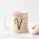 Cette tasse sera un favori pour tout le monde, de votre petite-mère douce à votre soeur adolescente. Avec le bon message, un mug peut devenir le compagnon précieux de n’importe qui pour les années à venir. Ce design présente une belle lettre dessinée à la main "V" en noir cursif sur un arrière - plan d'aquarelle étonnant. Le côté gauche présente un dégradé chaud de jaune à rose, tandis que le côté droit affiche un dégradé doux de rose à jaune. Autour de la lettre sont des mots vibrants de différentes couleurs, dont le bleu, l'orange, le rouge, le violet et le rose, mettant en évidence des traits positifs commençant par la lettre "V". L'effet global est un design visuellement attrayant et stimulant qui célèbre la beauté de la lettre "V" et ses qualités associées. L'arrière - plan aquarelle ajoute une touche d'élégance et de sophistication, ce qui rend ce design parfait pour des raisons d'inspiration ou de motivation.