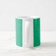 Cette tasse a un design art déco de lignes courbes bleues en forme de triangle sur un champ de vert répété à travers le design. Vous voulez une couleur différente ? Message-moi.