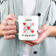 Drôle mug valentine avec des noughts & croix avec les cercles remplacés par des coeurs d'amour, votre nom de valentines, et le mignon dicton "tu as gagné mon coeur".
