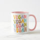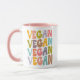 Cette simple tasse "Vegan" a un mot dans les couleurs rétro.