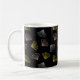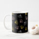 Cette tasse a un design art déco d'angle droit avec des lignes à d'autres angles en argent, or et cuivre, se répétant à différentes positions. Si vous aimez le design mais préférez différentes couleurs, envoyez-moi un message.