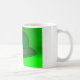 Une photo d'un Casquette de Derby Vert, brillant et coloré avec un orchestre d'argent avec quatre trèfles de feuilles, qui est sur un MUG DE CAFÉ.