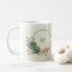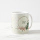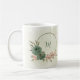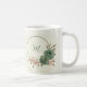 Magnifique tasse à café romantique avec des fleurs vert sauge et rose blush et quelques feuilles jolies .