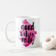 police de script de brosse pour un devis "bonnes vibes seulement" sur un trait de brosse d'aquarelle en deux tons rose et bleu chauds