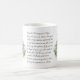Avec une belle image religieuse catholique traditionnelle de la Sainte Vierge Marie sur un "M" marié avec des fleurs bleues. La prière traditionnelle Memorare est au milieu de la tasse.