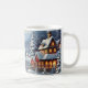 Belle tasse blanche avec un village le jour de Noël.