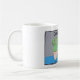 Mettez votre nom sur cette tasse décorée d'un mélange de médias, dessin original de trois cactus mexicains dans des pots. Vous pouvez le personnaliser avec n'importe quel nom ou choix de mots. Les cactus sont sur une surface bleue avec un arrière - plan gris. L'oeuvre est un dessin original de The Art of Being Beth.