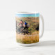 Une aquarelle a de trois hommes VTT dans les collines galloises.