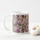 La longue vue d'un grand lit de fleur cultivé de pourpre rose Heather de floraison fleurit dans un grand lit de fleur cultivé. Photographié en Orégon un jour ensoleillé en mars 2011.