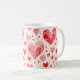 A white coffee mug featuring an all-over watercolor heart pattern with soft, hand-painted textures and a romantic artistic feel. The repeating heart design wraps smoothly around the mug, creating a charming and cohesive look that adds a gentle, warm touch to everyday drinkware.