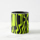 Une tasse design abstraite rayée ondulée en noir et vert.