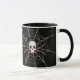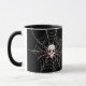 Araignée crânienne à thème Halloween déplaisante unique sur une toile d'araignée avec une tasse à café arrière - plan noire. Cette tasse serait un cadeau parfait pour n'importe qui ou un grand ajout pour une fête à thème Halloween. Vient dans un assortiment de couleurs pour l'intérieur et la poignée de la tasse.