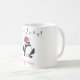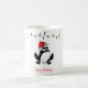 Illustration fantaisiste en noir et blanc avec chapeau de Père Noël rouge, une série de lumières de fête et un texte personnalisable "Joyeuses Fêtes" fait pour une tasse de Noël parfaite pour le travail ou la maison.