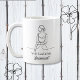 A sweet sentimental coffee mug asking someone to be your bridesmaid for your wedding. This mug is decorated with simple elegant line art illustrating a maid of honor, wedding dress, bouquet of flowers and high heels in line art. Inside is a cute witty funny quote.
