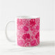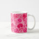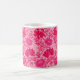 Tasse à café dans un vintage William Morris, Art Nouveau, imprimé floral de chrysanthèmes stylisés, numériquement rehaussé et coloré, dans les tons rose fuchsia profond, rose azalée et bordeaux, sur un arrière - plan rose pâle