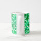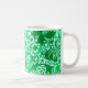 Tasse à café dans une vintage impression florale William Morris de lys stylisés et d'Irises, numériquement rehaussée et colorée, dans les tons clair à vert jade foncé sur un arrière - plan blanc