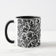 Tasse de café dans un vintage motif damassé William Morris de fleurs de chardon et de feuilles, en noir, sur un arrière - plan blanc, numériquement rehaussé et coloré