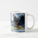 Coffee Mug montrée avec une photo d'un loup hurlant dans le parc national Yellowstone. Customisez cet objet ou achetez tel quel. Image stock
