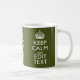 Votre Keep Calm vous dit sur une belle décoration personnalisée couleur vert olive. Un style personnalisé Keep Calm en disant sur un cadeau de nature. Essayez humour ou fantaisie sur vos mots créatifs sur deux lignes de texte modifiables. N'oubliez pas d'utiliser les lettres CAPITAL pour obtenir les meilleurs résultats. Utilisez le lien "Demandez à ce concepteur" pour nous contacter avec vos demandes de design spécial ou pour obtenir de l'aide sur vos besoins de personnalisation.